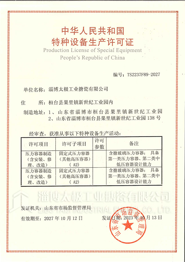 公司名稱:淄博太極工業(yè)搪瓷有限公司
